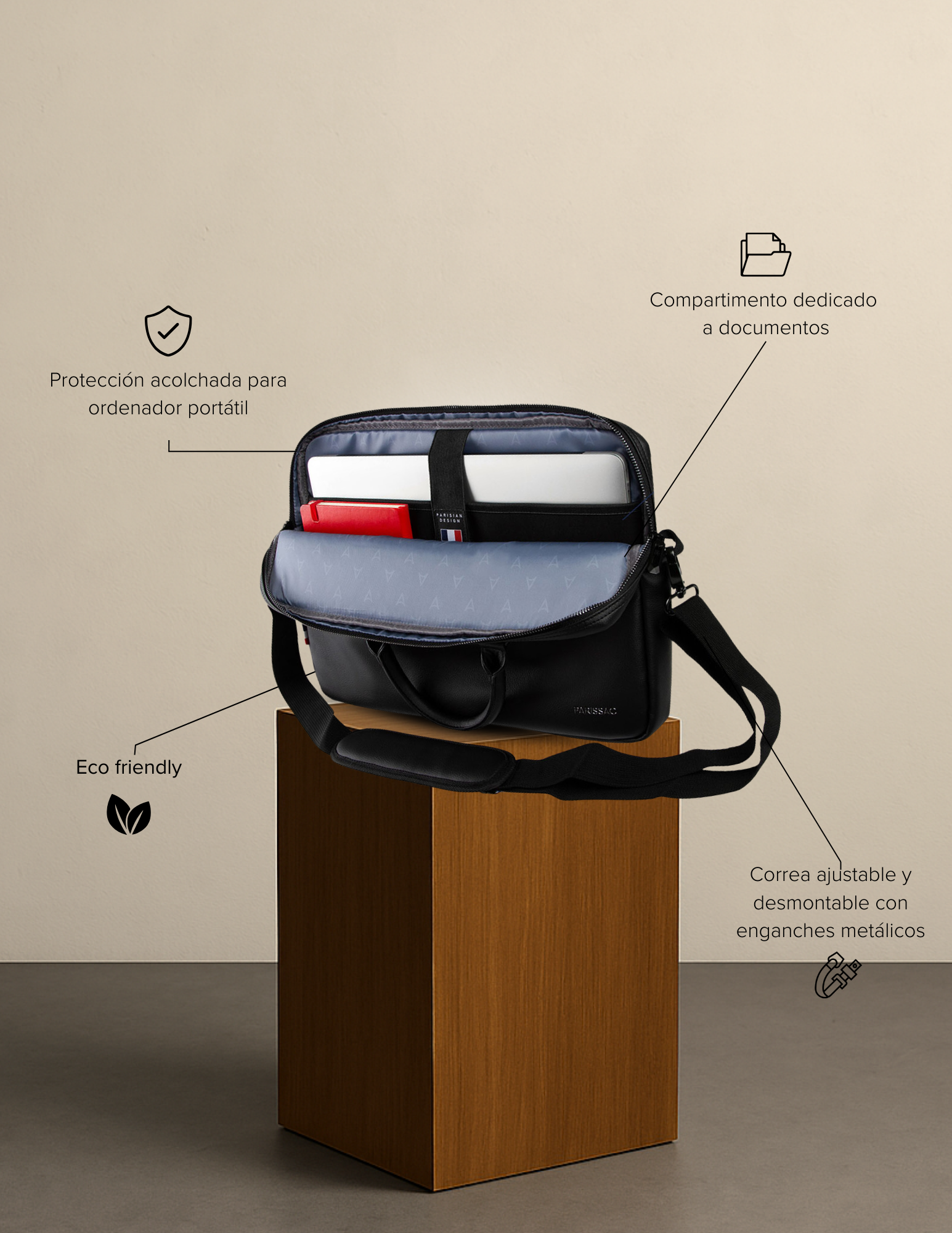 With a sleek and refined design, it's designed to accompany you on workdays and city commutes. Made with durable and environmentally friendly materials, it offers reliable protection for your laptop, as well as efficient organization for your essential documents and accessories.