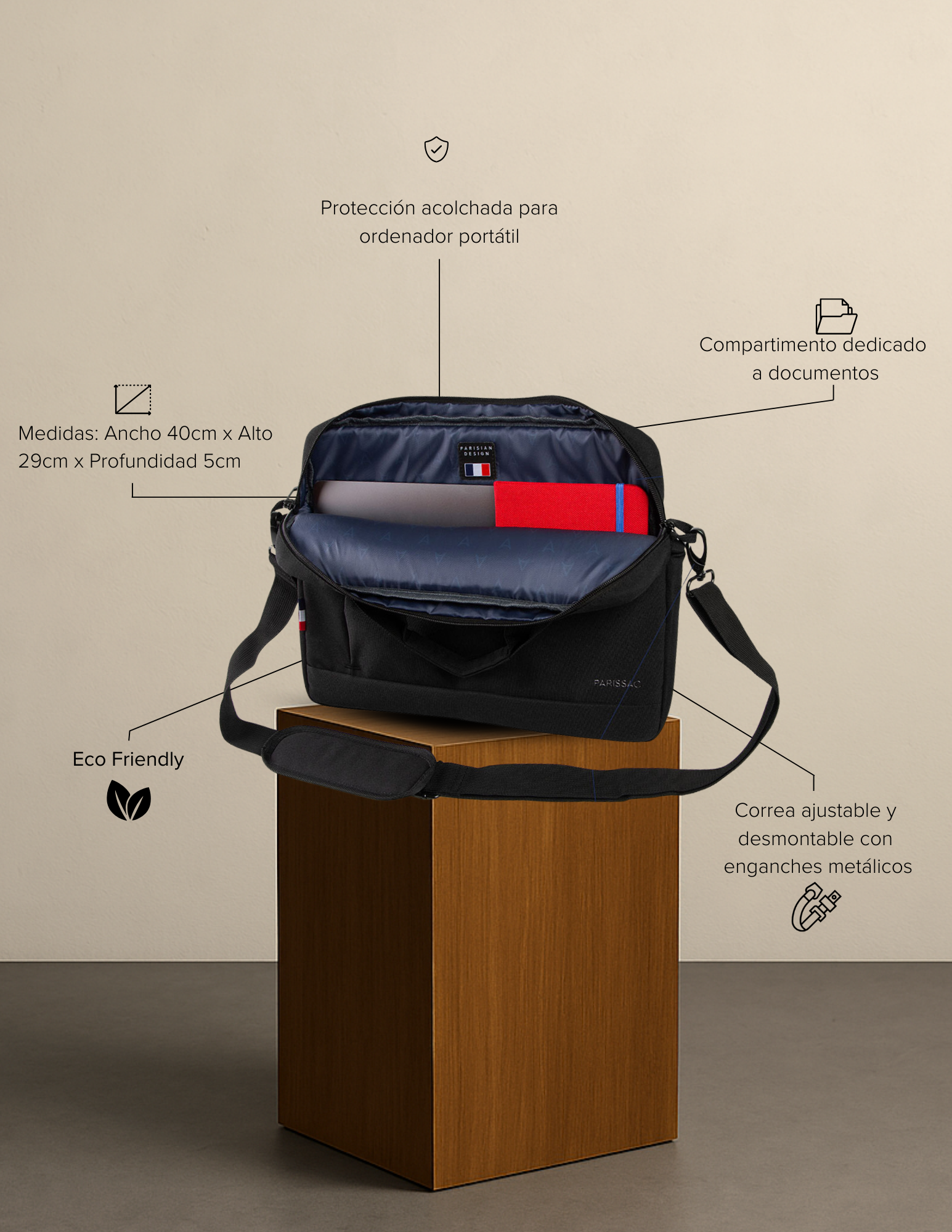 Thanks to its lightweight structure and padded compartment, it protects your laptop and keeps your essential documents and accessories perfectly organized. Its versatile design, with an adjustable strap and a suitcase attachment system, makes it the ideal companion for a hassle-free workday.