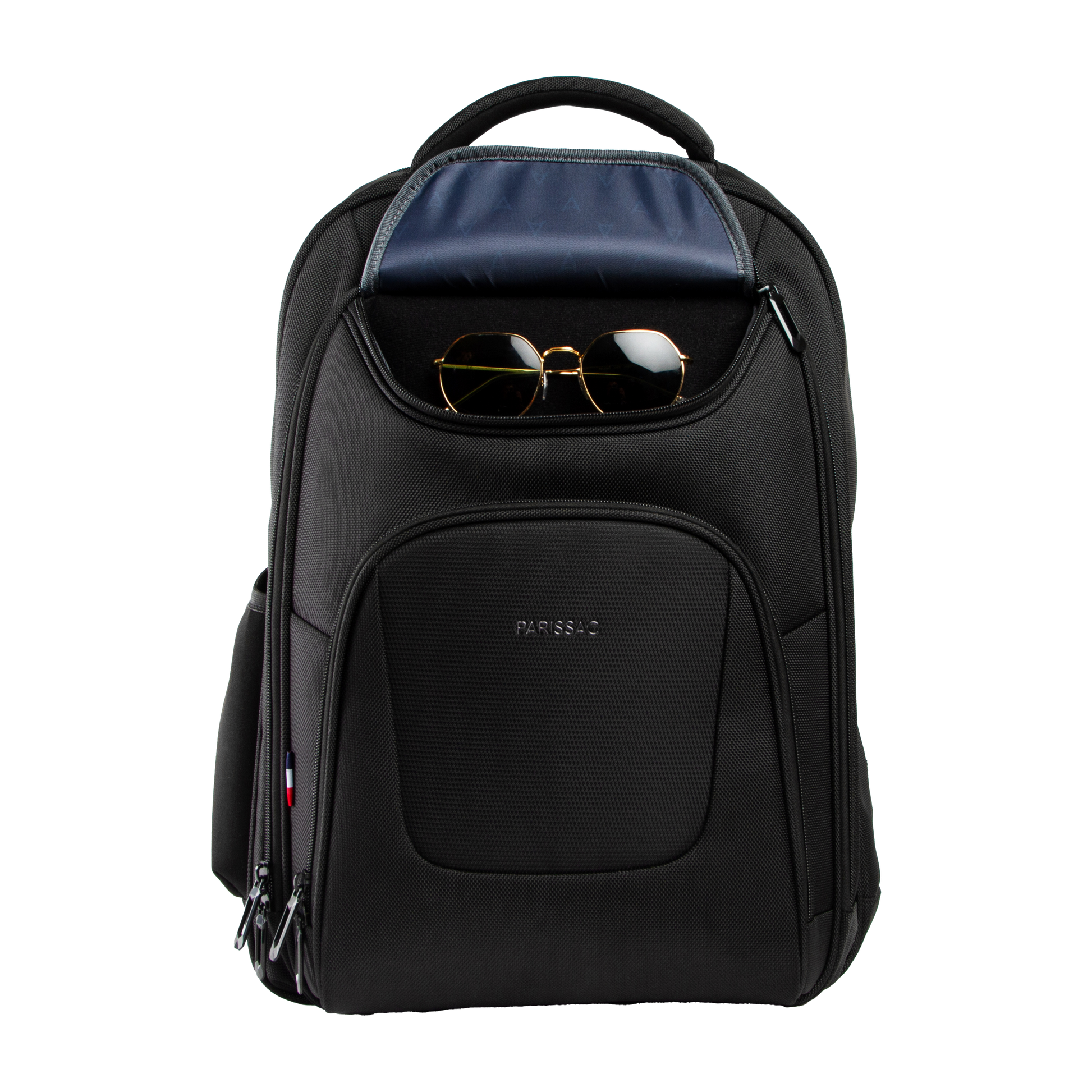 The new backpack redefines the boundaries of the urban bag. Its ergonomic design conceals a reinforced structure: a dedicated glasses compartment, an ultra-resistant metal closure, and an integrated organizer for documents, chargers, and small accessories. Every space has been designed to keep your essentials always within reach.